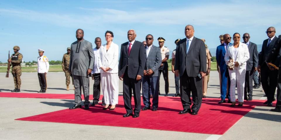 À son arrivée sur le tarmac de l’Aéroport International Toussaint Louverture, il a été accueilli par le Premier Ministre Garry Conille ainsi que des membres du gouvernement, dont la Ministre des Affaires Étrangères, Dominique Dupuy.